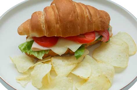 Con jamón de pavo, queso manchego, lechuga italiana, tomate y papas.