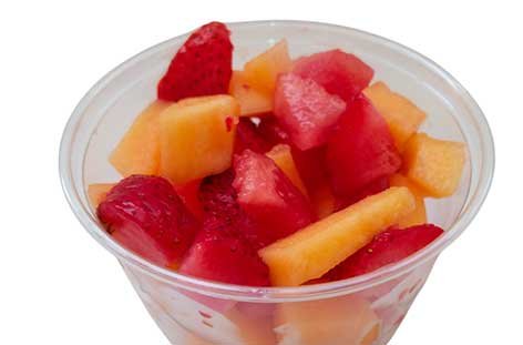 Fruta picada puede ser melón, sandía, fresa, piña en un vasito de 8 oz.
