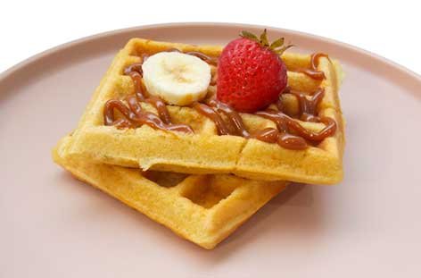 2 Waffles hechos con nuestra receta tradicional. Topping a elegit: lechera, cajeta, hershey´s, nutella o miel de maple.